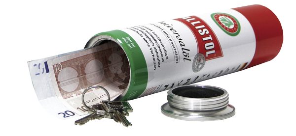 Un cambriolage a lieu presque chaque minute. Une raison suffisante pour cacher vos affaires en toute sécurité. Notre coffre-fort camouflé offre une cachette secrète ingénieuse. La boîte cachette en fer blanc ne se distingue pas de l’original, mais contient un compartiment secret à la place de l’huile universelle.