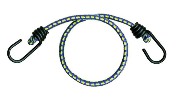 Câble tendeur en caoutchouc, avec un crochet à chaque extrémité.