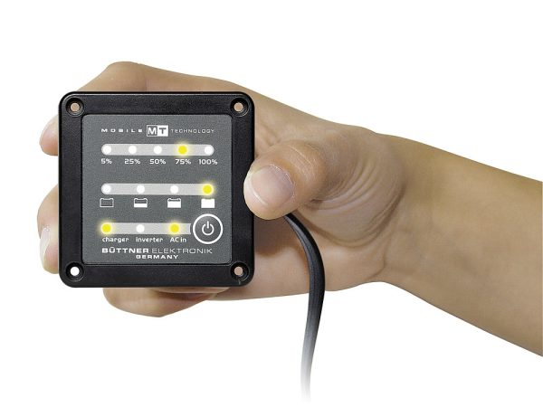 Cette combinaison chargeur / onduleur (ICC) est considérée comme une alimentation universelle pour les véhicules de voyage. Avec l’alimentation à quai, le chargeur automatique démarre automatiquement et charge les batteries de bord et, si nécessaire, la batterie de démarrage, en fonction du type et de la capacité de la batterie (tous deux réglables). Si le câble d’alimentation à quai est faiblement protégé, les appareils peuvent être limités. Si des courants de démarrage élevés (par exemple, pour la climatisation) sont nécessaires, ils sont temporairement disponibles grâce à la batterie de bord. L’onduleur à onde sinusoïdale intégré avec commutation de ligne assure cette fonction. Un détecteur de charge intégré met l’onduleur en mode économie d’énergie lorsqu’il n’est pas utilisé pendant une longue période. La livraison comprend une télécommande pour l’intérieur. L’onduleur est démarré via celle-ci et peut être commuté sur le mode automatique, continu ou nuit. Il indique également si l’alimentation à quai est branchée et la sortie de puissance instantanée de l’onduleur. A