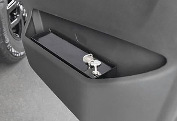 Le coffre-fort se visse à la place du porte-cartes situé sur la portière du conducteur ou du passager sur les points de fixation d’origine du porte-cartes.