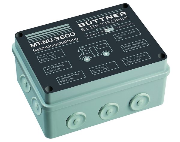sinusoïdaux si aucune commutation réseau n’est intégrée ou si les charges raccordées risquent de les surcharger. La commutation réseau veille à ce qu’une alimentation de 230 V optimale soit toujours disponible sur les prises intérieures. Soit via une prise de quai si elle est alimentée sur l’emplacement, soit de manière autonome via un onduleur. De plus, une sortie 230 V peut être activée. Commande via un ordinateur de batterie MT 5000 iQ (voir côté…..) ou tout signal de commande 12 V. Cela signifie qu’un chargeur e-bike peut être activé à bord et rechargé via l’onduleur même en l’absence de raccordement au réseau