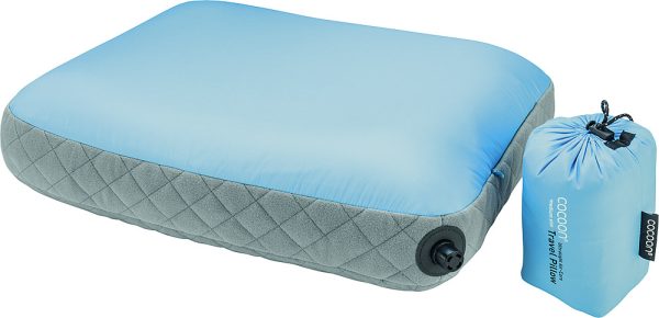 L’Air Core Pillow Ultralight est un oreiller de voyage avec un garnissage en fibre synthétique et un noyau d’air gonflable dans le milieu. Il offre ainsi le maintien et le confort d’un coussin classique de qualité mais avec un encombrement et un poids minimum. Une petite fermeture éclair dans la housse permet d’enlever le noyau d’air pour laver la housse ou réparer le noyau si nécessaire.