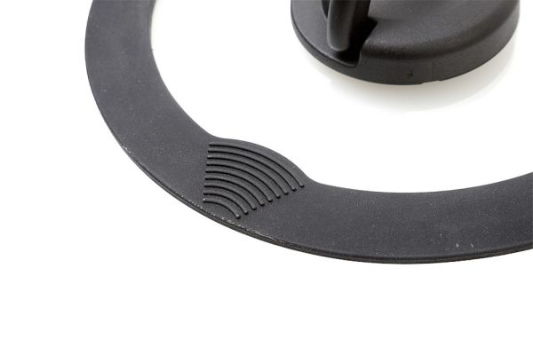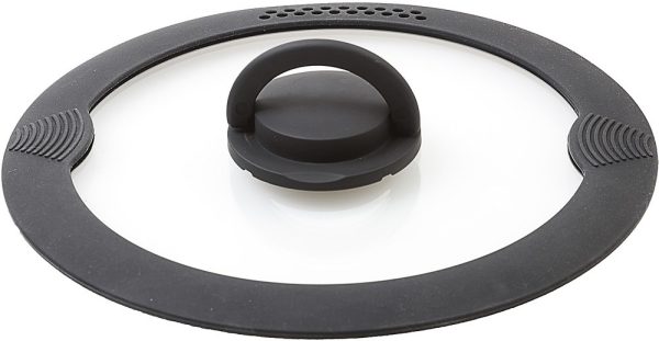 Couvercle en verre à rebord antibruit en silicone avec ouverture de tamis et fente pour fixer la pince