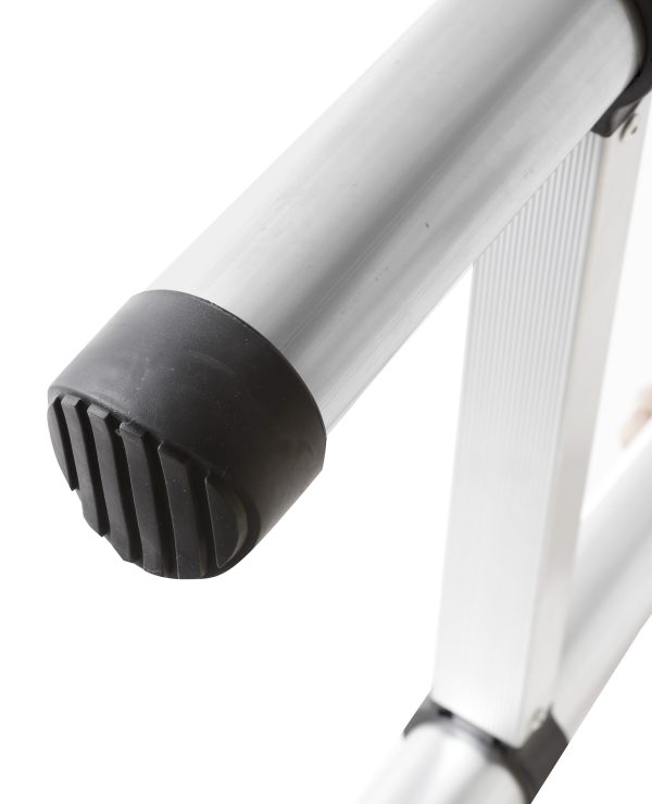 Échelle télescopique en aluminium dotée d’une nouvelle technologie de fermeture douce assistée par air qui élimine le risque de blessures aux doigts. Facile à transporter. Réglage en hauteur. Équipée de patins en caoutchouc antidérapants pour plus de sécurité. Très compacte.