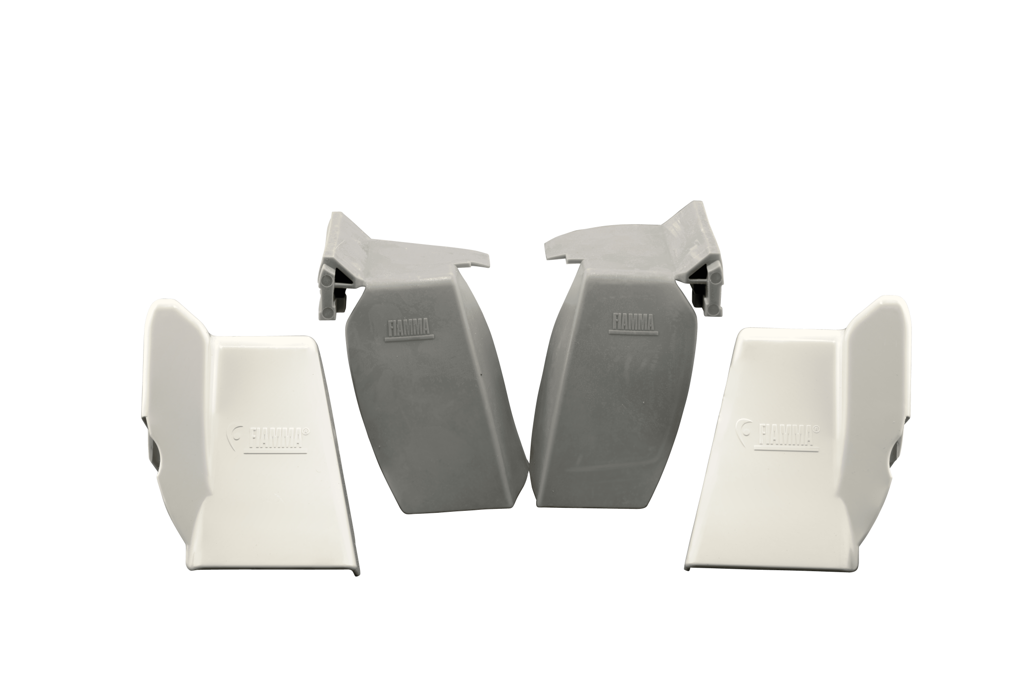 Capuchons en caoutchouc placés aux extrémités de la paroi frontale des stores F45 S ou F45. Empêche l’eau de pénétrer dans les coins lorsque le Privacy Room est monté.