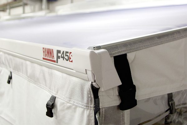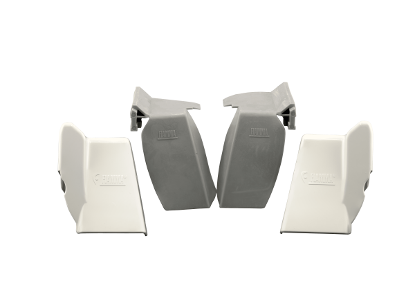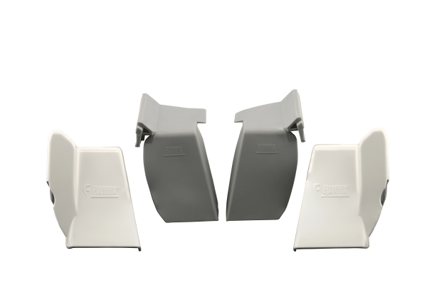Capuchons en caoutchouc placés aux extrémités de la paroi frontale des stores F45 S ou F45. Empêche l’eau de pénétrer dans les coins lorsque le Privacy Room est monté.