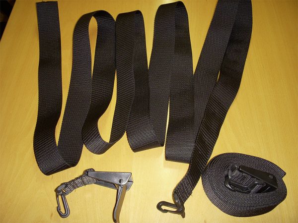 Sangles pour housse de porte-vélos pour tendre le sac transparent pour panneau de signalisation. Compatibles avec les housses de vélo Hindermann. Sangles de 380 cm réglables, crochets sur les deux côtés.