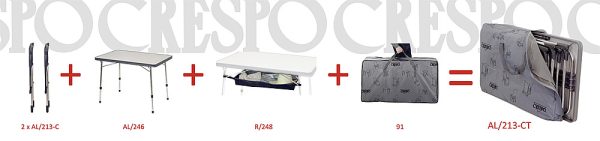 Ensemble constitué de 2 chaises pliantes Compact extra-plate AL/213-C + table AL/246 + filet de rangement + sac de transport.