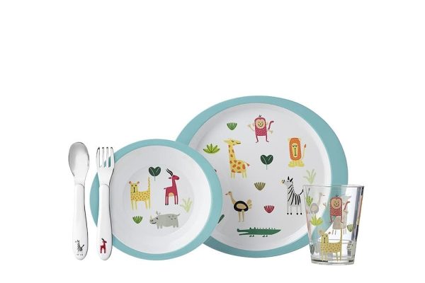 La première prise de nourriture, la première purée, le premier fruit ou la première gorgée (personnelle) : chaque première fois représente un moment très particulier. Grâce à la vaisselle pour enfants de Mepal, les mains de nos jeunes aventuriers peuvent partir à la découverte de nouveaux goûts avec les animaux d’Animal Friends. L’ensemble comprend une assiette plate, un bol, un verre pour enfants, une fourchette et une cuillère.
