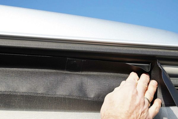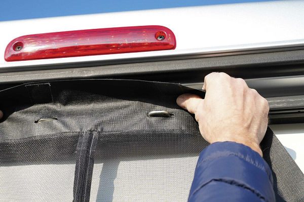 Quoi de plus agréable que de douces nuits d’été au bord du lac – avec portes et fenêtres ouvertes. Afin d’éviter à cette occasion la visite d’insectes acharnés, nous recommandons notre PROTECTION ANTI-MOUSTIQUES : forme parfaitement adaptée, installation simplissime – et dont vous ne voudrez plus vous passer. Bande magnétique cousue, montage simple et rapide, convient pour Ducato, Peugeot et Citroën à partir de 06/2006.