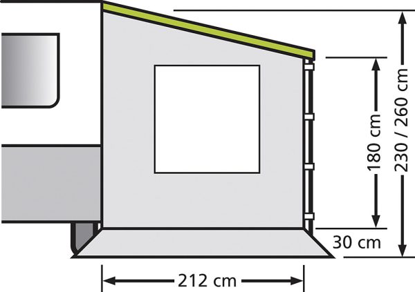 Paroi latérale universelle pr Caravanstore avec fenêtre Avancée 225 cm