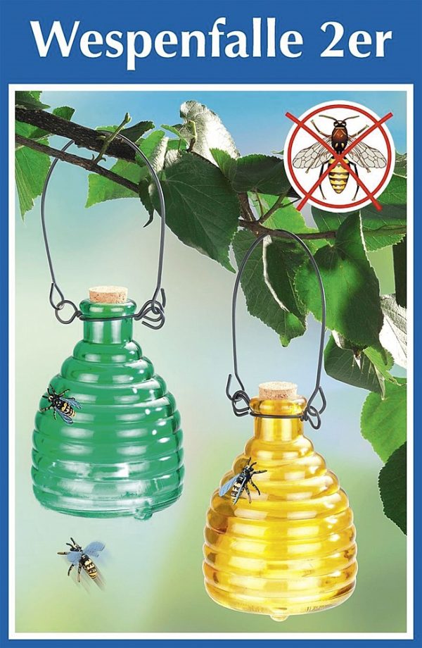Si vous voulez toujours savourer votre petit déjeuner en toute tranquillité sur la terrasse ou le balcon, le piège à guêpes est un incontournable. Décoratif et pratique à la fois : Remplissez-le simplement de vinaigre ou d‘eau sucrée et accrochez-le à l‘arbre le plus proche ou à proximité de la table. Les insectes nuisibles gênants s’y glissent, mais ne s’en sortent pas si facilement en raison de sa structure spéciale. Fonctionne sans répulsifs chimiques contre les insectes ! Avec support métallique à suspendre.