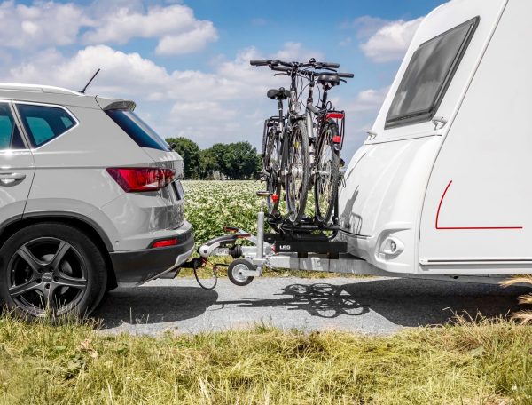 Conçu pour le transport de 2 vélos sur le timon d’une caravane.