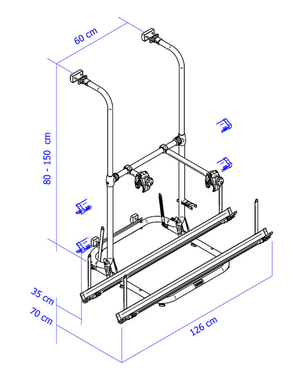 Robuste et durable – La gamme de produits est composée de matériaux légers et de haute qualité. Une stabilité optimale est obtenue en répartissant uniformément le poids de vos vélos sur la plate-forme verrouillable. Le porte-vélo Sport G2 offre un grand confort et une grande facilité d’utilisation grâce à son nouveau support de cadre extra-robuste, ses nouvelles bandes avec fermeture à cliquet et ses rails qui peuvent être déplacés sans outils.