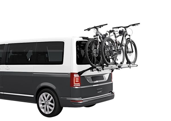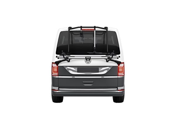 Le montage du WanderWay de Thule est simple et rapide grâce à son adaptation spéciale pour le VW T6 (ne convient pas au VW T5). Il porte deux vélos et peut être étendu à 4 vélos par l’ajout d’un troisième et d’un quatrième rail. Grâce à sa construction robuste, vous pouvez également transporter deux vélos électriques d’un poids total de 60 kg.