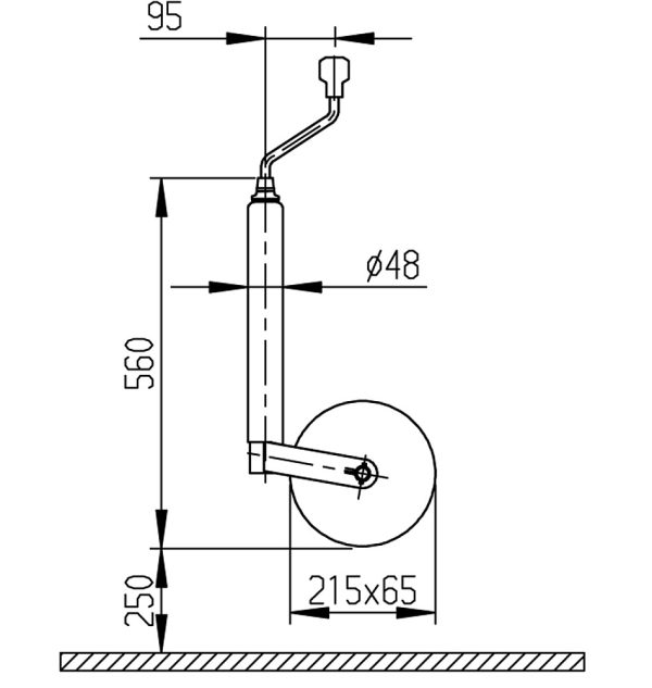 Roue jockey Al-Ko Plus 215 x 65 mm Caoutchouc plein, jante plast.