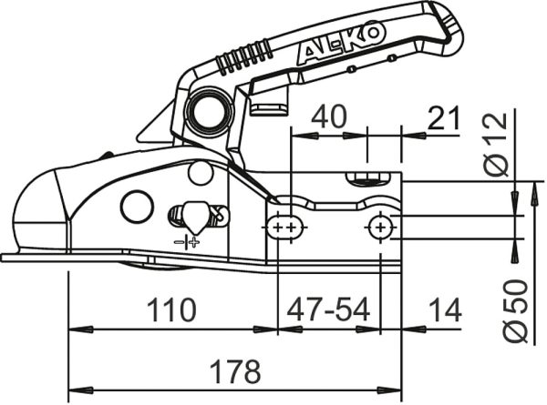 La boule du véhicule est immergée et a déverrouillé le levier de sécurité. Ce n’est que dans ces conditions que la poignée prend la position horizontale et signale à l’opérateur qu’une connexion sûre a été établie.