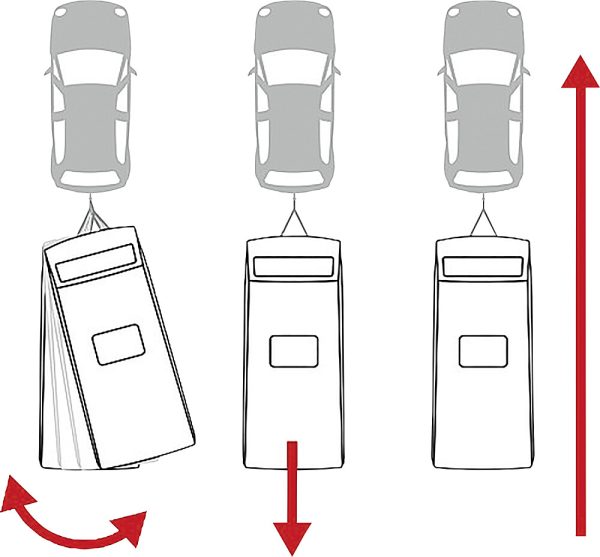L’ATC contrôle le comportement des remorques en permanence. Des capteurs détectent les mouvements latéraux dangereux directement sur l’essieu de la remorque, avant même que le système ESP présent dans le véhicule léger n’enregistre le mouvement pendulaire. Un freinage progressif s’enclenche immédiatement sans l’intervention du conducteur et la remorque retrouve sa stabilité. Le système d‘urgence réagit automatiquement en cas de dépassement des valeurs limites de vibration de l‘attelage.