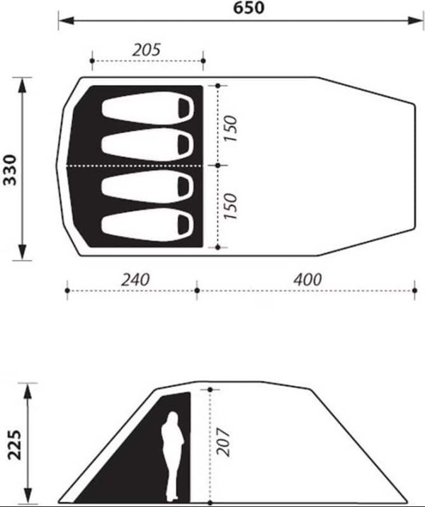 La tente Dogon 4 (+2) Air est une tente tunnel polyvalente conçue pour des groupes de jusqu’à quatre personnes. Elle offre suffisamment d’espace et de confort pour des excursions de camping ou des séjours prolongés en plein air. Avec une hauteur sous plafond de 225 cm, elle permet une agréable liberté de mouvement à l’intérieur. La tente est équipée de deux chambres séparées, offrant intimité et tranquillité. L’utilisation de polyester de haute qualité pour la toile extérieure et la toile intérieure garantit durabilité et résistance aux intempéries. La colonne d’eau de 4000 mm pour la toile extérieure et de 3000 mm pour le sol assure que la tente reste sèche même sous la pluie. La tente Dogon 4 (+2) Air est donc un choix fiable pour les amateurs de plein air qui attachent de l’importance à la qualité et à la fonctionnalité. Deux chambres séparées pour plus d’intimité. Matériaux de haute qualité avec une colonne d’eau élevée pour une protection optimale contre les intempéries. Fenêtres intégrées pour une meilleure ventilation et luminosité. Arceau en aluminium léger pour une manipulation facile et une stabilité accrue.