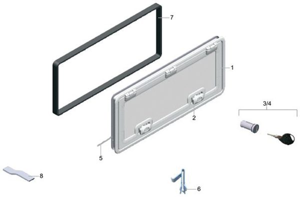 L’installation s’effectue en position horizontale ou verticale. Avec système de verrouillage multipoint (sauf dimensions de commande 37,5 x 30,5 cm). La découpe est replacée dans la trappe pour faire office de rembourrage. Cylindre de serrure adapté 9991684.