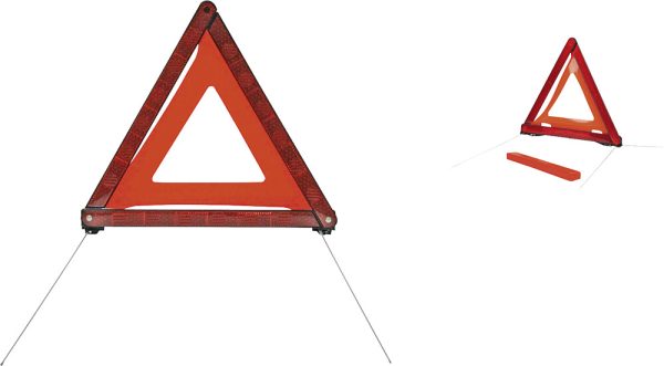 | Informations de sécurité | Le triangle de signalisation est conforme à la norme ECE-R27 et doit être placé en cas d'accident ou de panne conformément au code de la route afin d'avertir les véhicules qui suivent. L'emplacement recommandé est d'au moins 50 mètres hors agglomération et 150 mètres sur autoroute, derrière le véhicule. Il doit être placé exclusivement sur un sol ferme et être protégé du vent. Il convient d'éviter de le placer dans les virages ou à des endroits sans visibilité. Après utilisation, il doit être rangé au sec et propre dans le carquois prévu à cet effet. |